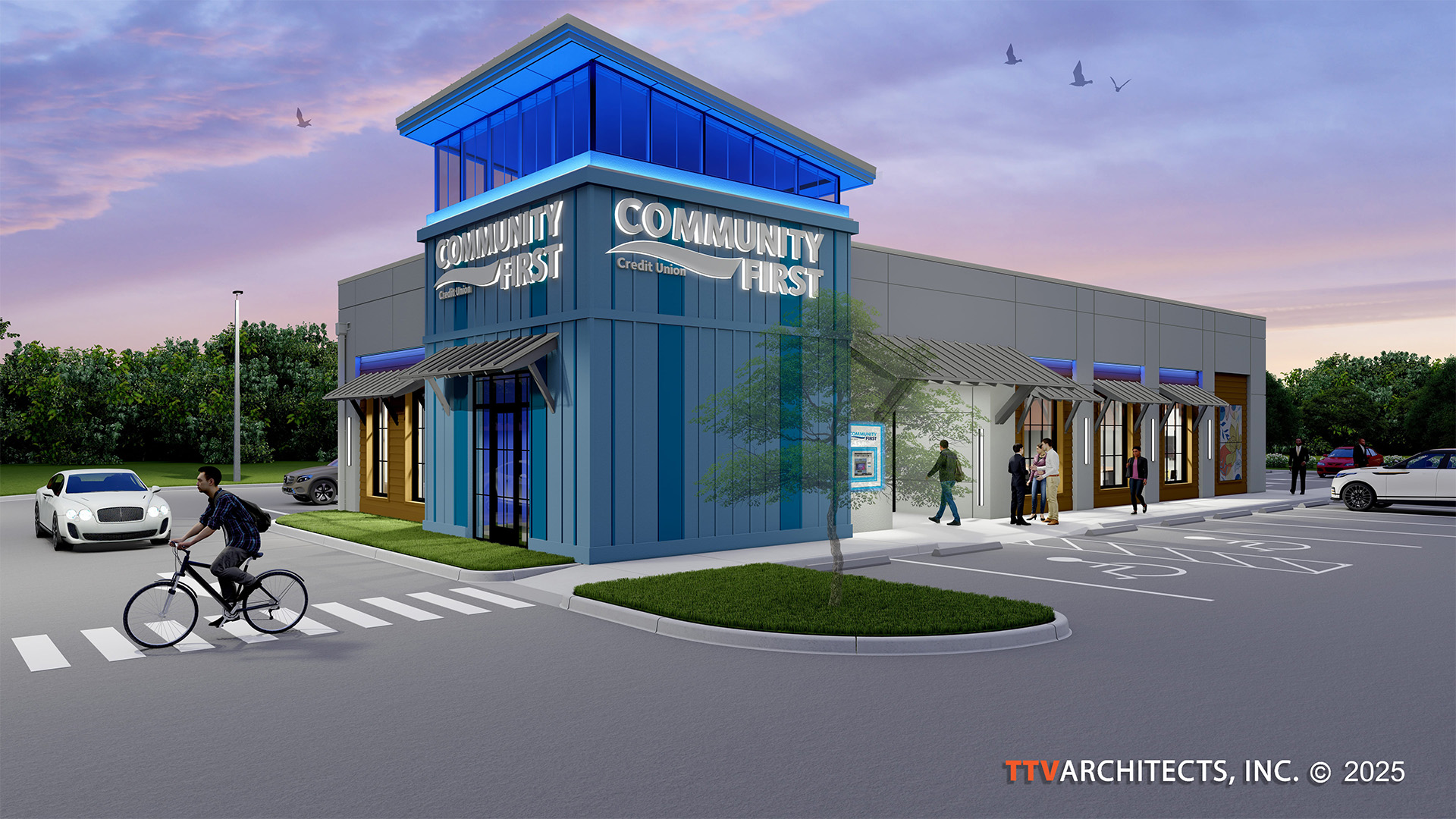 Community First has applied to build a 3,100-square-foot, freestanding branch with a drive-thru, two ATMs and the credit union’s signature tower feature. Construction will commence once permits are approved with opening planned for 2026.